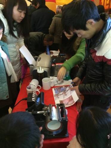 除了搶錢活動,潩水莊園還為到來的各位客戶朋友們準備了馬克杯DIY,在新的一年里,能夠通過烙印馬克杯保存一家人的幸福,孩子的歡樂和姐妹淘的友誼可以說是一件非常有意義的事情,照片上美麗的笑容在潔白的杯面上瞬間洋溢開來,客戶的臉上也洋溢著滿滿的幸福,溫馨場面讓人羨慕不已。