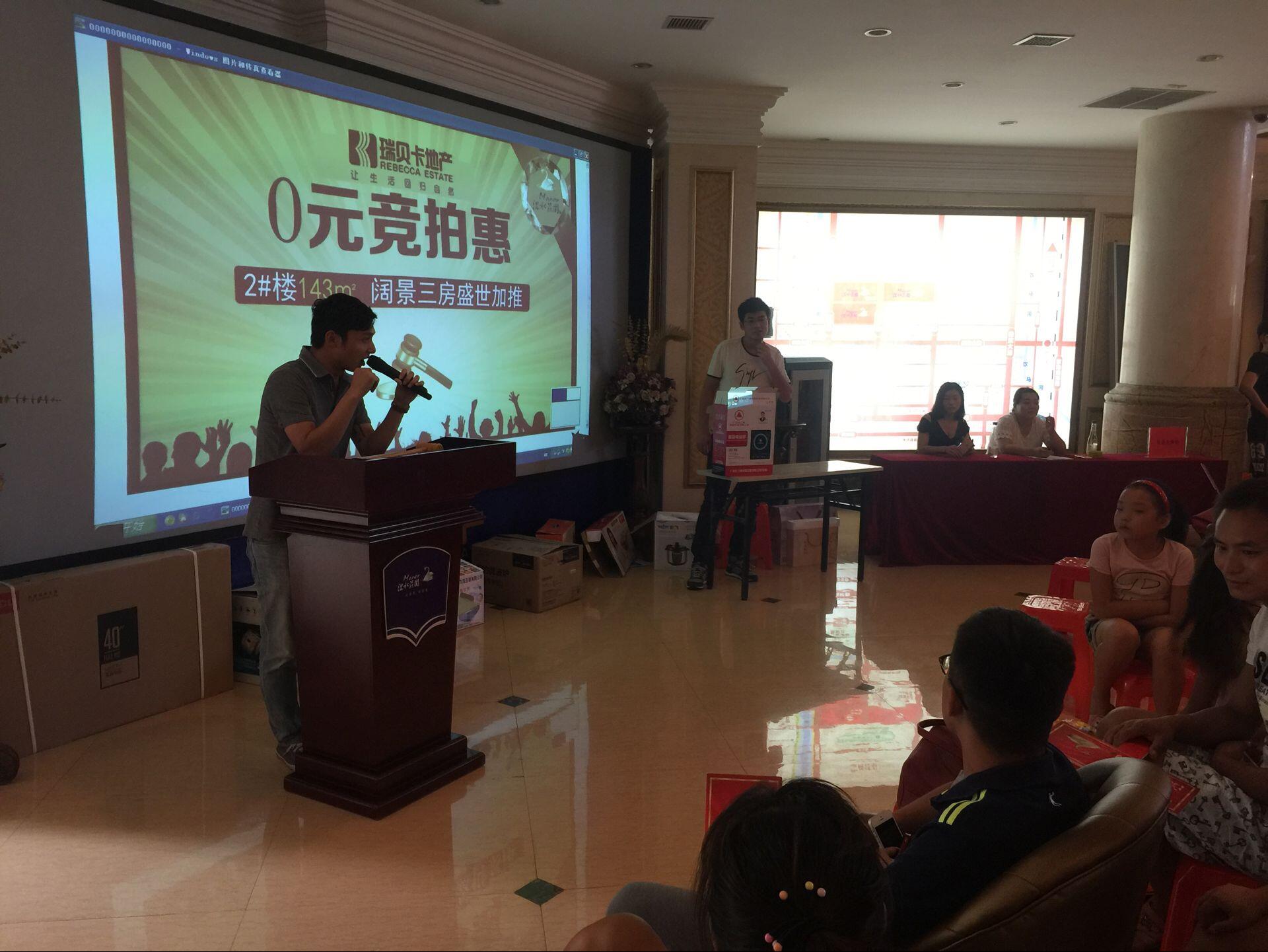 “0”元拍賣會在到訪者的期待中拉開序幕,主持人一一將拍賣商品呈現在拍賣臺,引起場內的騷動。 TCL42寸液晶電視、微波爐、電飯煲……數十種名牌家電,齊聚銷售中心。每當主持人介紹完產品,現場的朋友便紛紛舉起號碼牌搶拍自己看中的產品,生怕自己慢了一步,心動的產品被別人搶走了,F場氣氛開心又緊張!