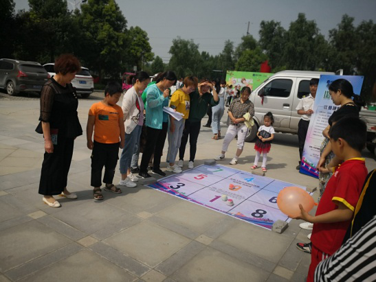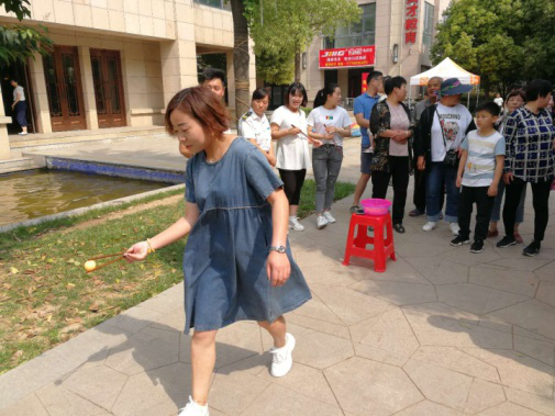 四個比賽項目同時開始,心心相映與擲沙包在社區廣場舉行,筷子夾乒乓球與跳繩在售樓部門口舉行。