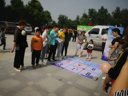 擲沙包,參賽隊員站在規定地地點向目標投擲,沙包落在哪個格子,就可以獲得相應的分數,最終分數相加最高的獲勝,大人和孩子都屏住呼吸,調整角度,用心地投出沙包,當沙包落到大數格子里時會歡呼著跳起,感覺自己最優秀,看著她們開心地像個孩子,我們也會被她們傳染地開心起來。