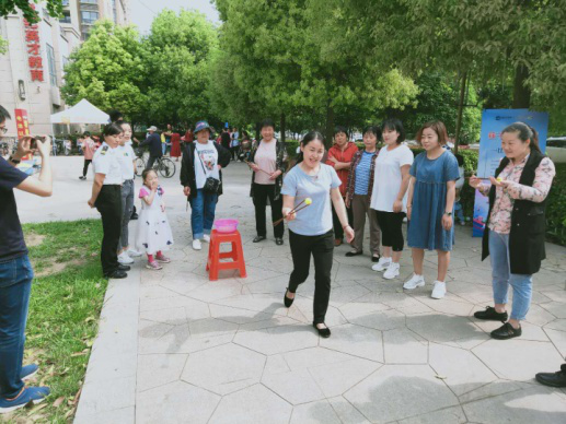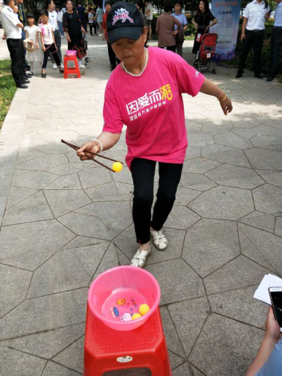 活動由社區辛書記主持,他宣布了比賽項目共四項:筷子夾乒乓球、心心相映、跳繩、擲沙包,并將比賽規則一一詳細說明。