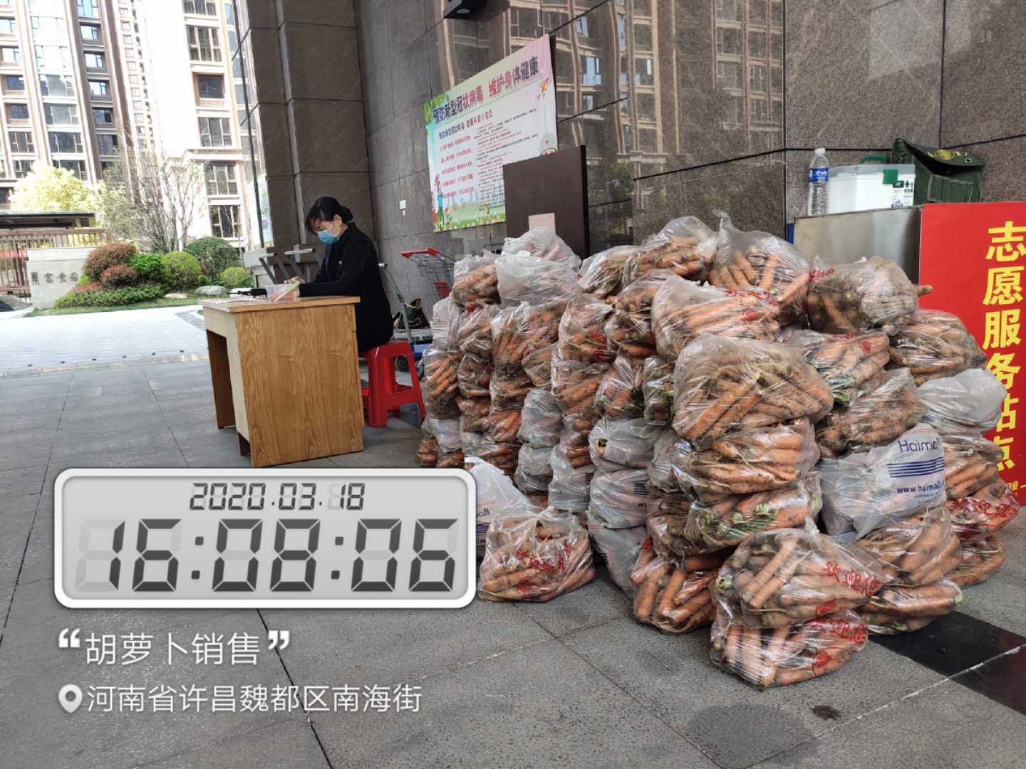 3月18日上午,瑞貝卡物業公司就將10000余斤水果胡蘿卜運抵到瑞貝卡各小區,各項目通過業主微信群、朋友網發起了“抗疫情、獻愛心”水果胡蘿卜銷售活動,幫助蔬菜種植戶保銷保收。
