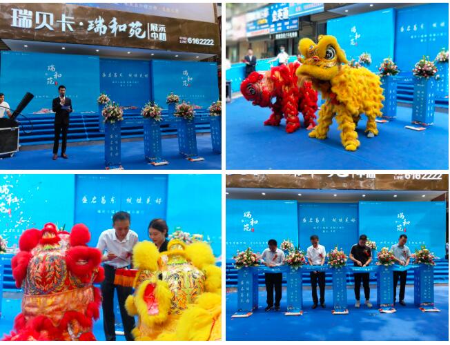 上午8點左右,展廳已經迎來許多客戶參與萬斤大米全城送活動。9點整,在熱烈的掌聲中,主持人上臺宣布本次盛典拉開帷幕,舞獅團隊帶來精彩的舞獅表演,瑞貝卡地產長葛分公司總經理李偉皞先生為雄獅點睛,瑞貝卡地產總經理助理劉璐先生、瑞貝卡地產銷售總監鄭晟先生、瑞貝卡地產長葛分公司辦公室主任孫振龍先生共同為本次活動剪彩。剪彩儀式結束后,啟動門緩緩打開,瑞貝卡在長葛開啟華麗新篇章。