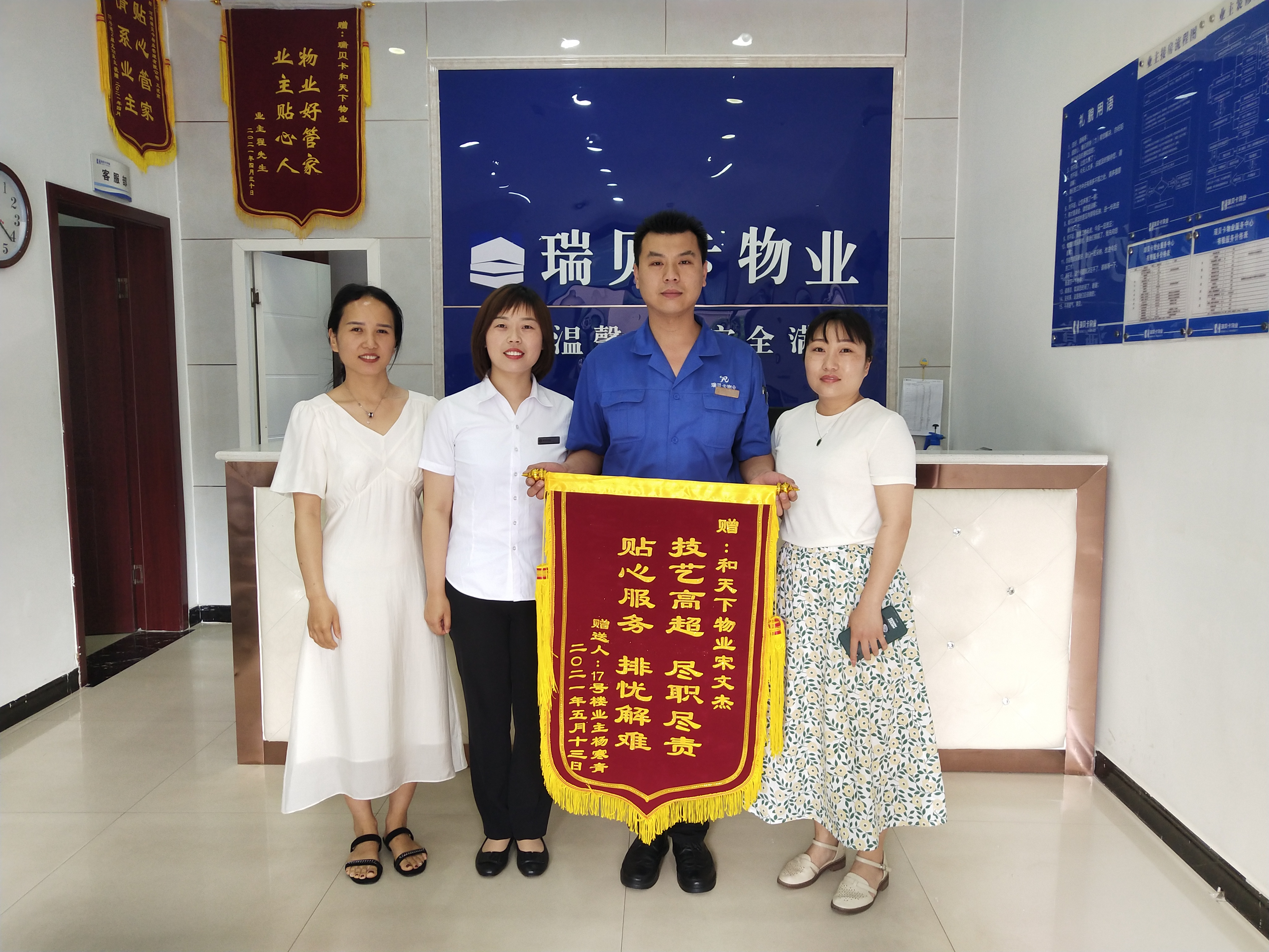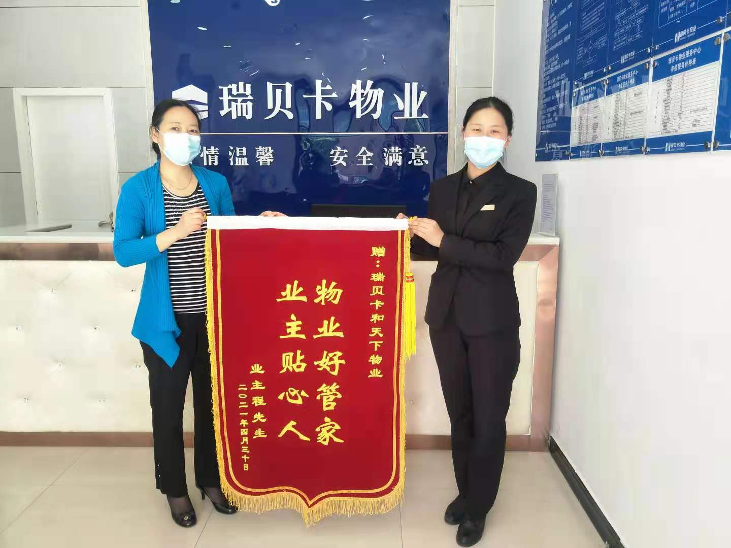 日前,許昌瑞貝卡和天下物業服務中心客服管家劉佳收到了一面錦旗,上面繡著“物業好管家 業主貼心人”的字樣。