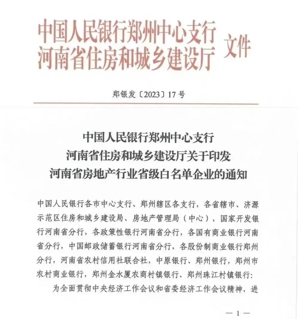 近日,為進一步加大對河南省內優質房地產企業的金融支持力度,中國人民銀行鄭州中心支行、河南省住房和城鄉建設廳聯合發布了《關于印發河南省房地產行業省級白名單企業的通知》,篩選確定了100家房地產行業省級白名單企業。