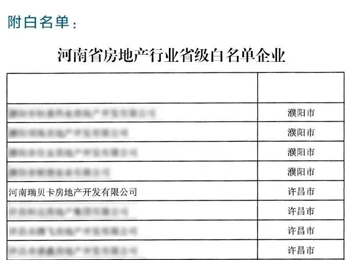 瑞貝卡地產入選河南房地產行業省級白名單企業